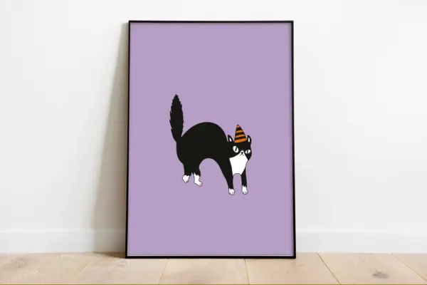 Halloween Funny Cute Cat Art Printable Surprised Black Cat Wall Art Funny Halloween Decorations Jpg Png Print