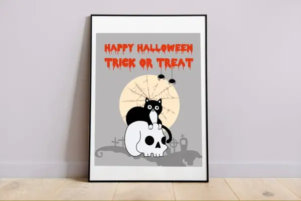 Halloween Wall Art Cute Black Cat Printable Wall Decor Halloween Decorations Fall Decor
