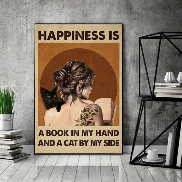 Book Lover Cat Companion Poster Canvas - Reading and Feline Inspiration Wall Art