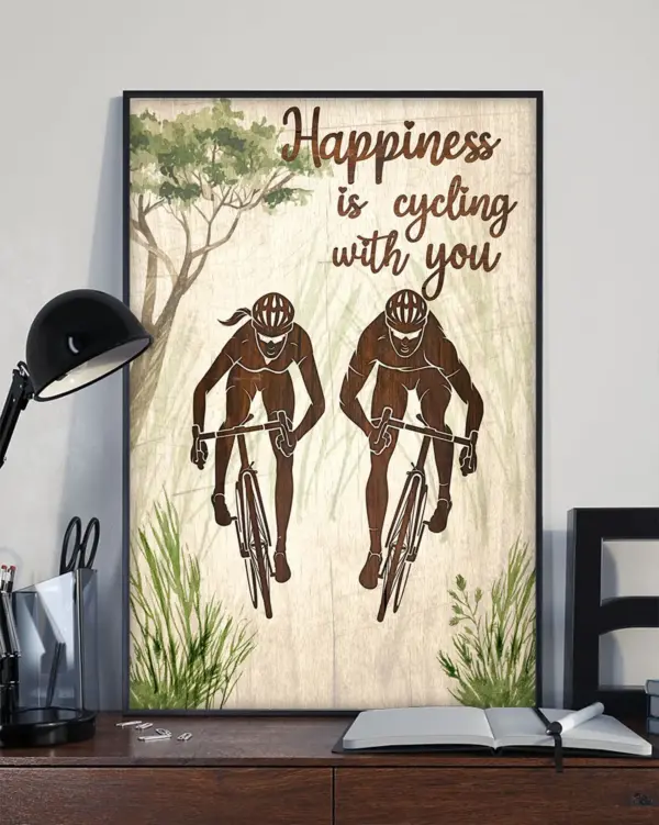Happiness Is Cycling With You Vintage Poster Cycle Sport Cycling Club Road Cycling Married In A Relationship Couple Wall Art Signs