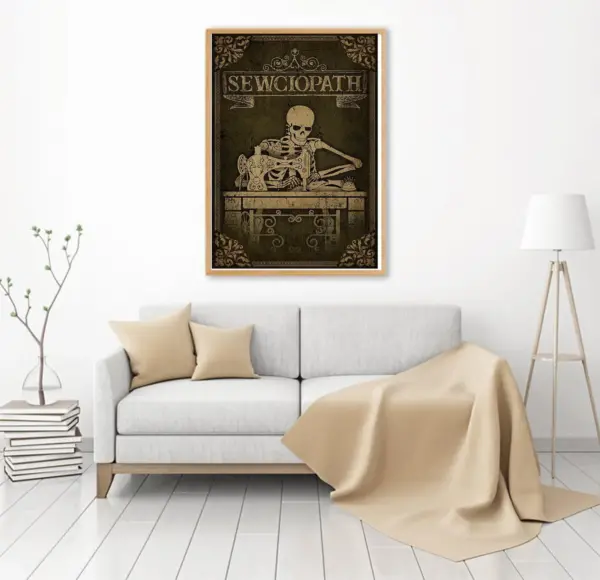 Hardcore Sewciopath Skeleton Poster Framed Matte Canvas