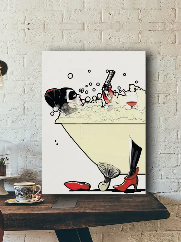 Harley Quinn In The Bath Poster Harley Quinn Art Supervillain Print Funny Bathroom Decor Bathroom Poster Funny Decor Framed Poster