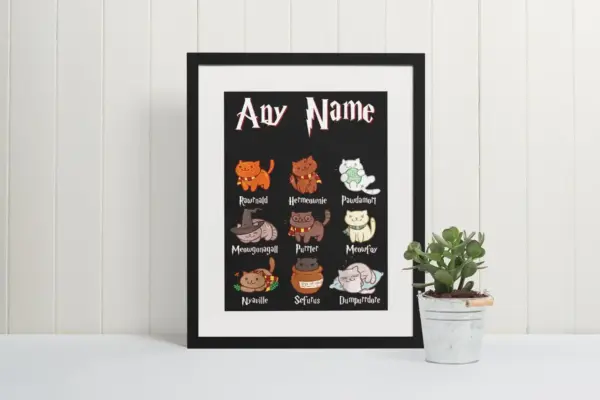 Harry Potter Print Harry Potter Cats Print Cat Print Personalised Harry Potter Picture Perfect Gift Present For Any Harry Potter Cat Fan