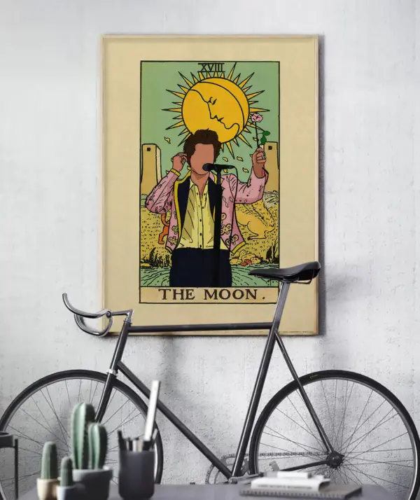 High-quality Harry Styles posters and tarot card prints, including "The Moon" design. Available as canvas art. Perfect for fans!