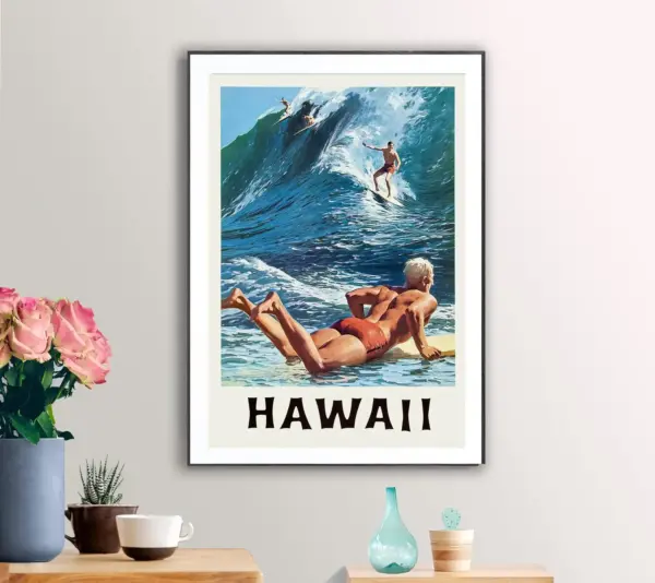 Hawaii Surfing Vintage Travel Poster Poster Paper Sticker Or Canvas Print Gift Idea
