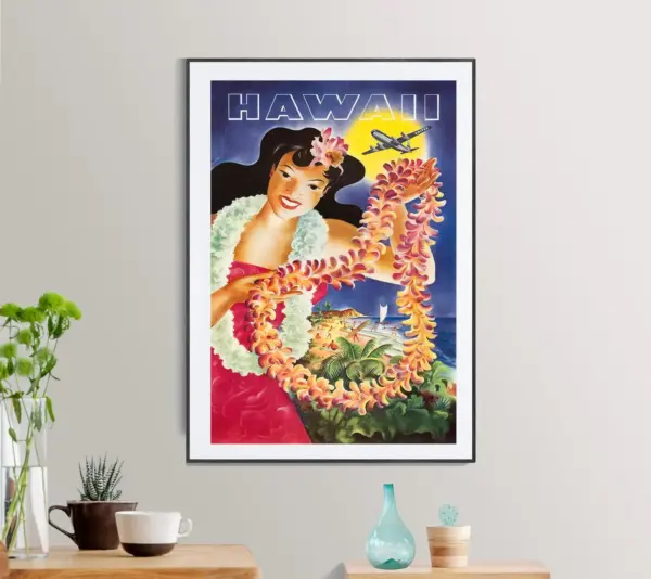 Hawaii Vintage Travel Poster Poster Paper Sticker Or Canvas Print Gift Idea