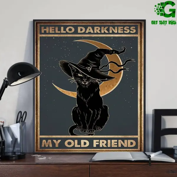 Hello Darkness My Old Friend Poster Cat Lovers Wall Art Living Home Decor Wall Decor Best Gift Ever Cat Lovers Decoration