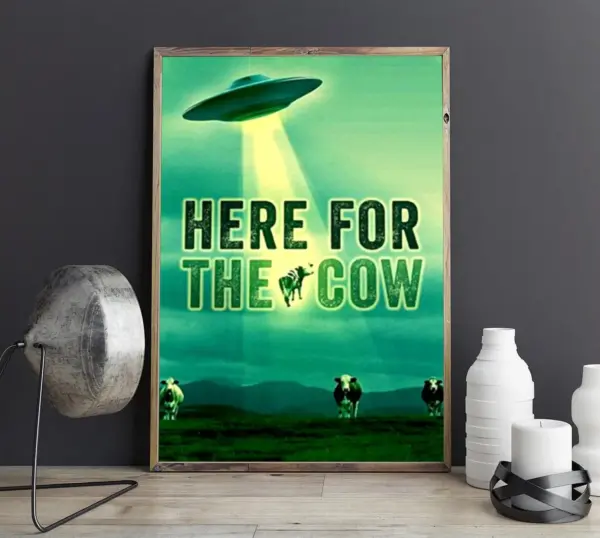 Here For The Cow Alien Poster Cow Poster Funny Cow Poster Best Gift Ever
