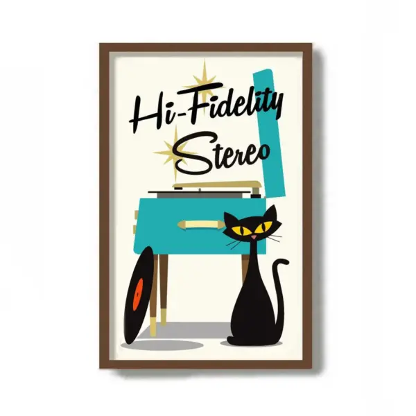 High Fidelity Stereo Old Record Player Mid Century Modern Art Black Cat Art Print Vinyl Record Storage Cat Lover Gift Vinyl Lp