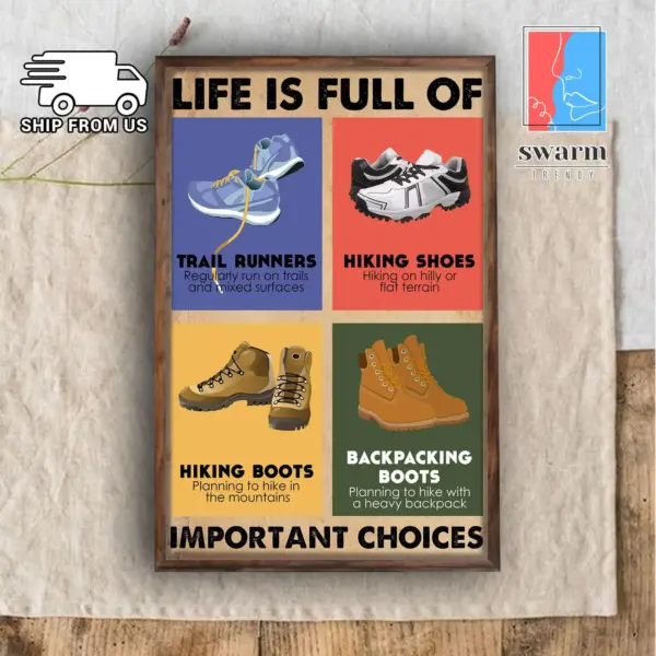 Hike Hiking Trekking Camping Shoes Lovers Life Is Full Of Important Choices Poster Home Living Decor Poster