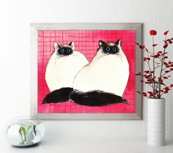 Himalayan Kitties On Pink Plaid Fine Art Print Himalayan Cat Art Himalayan Cat Print Cat Artwork Cat Wall Art Himalayan Cats