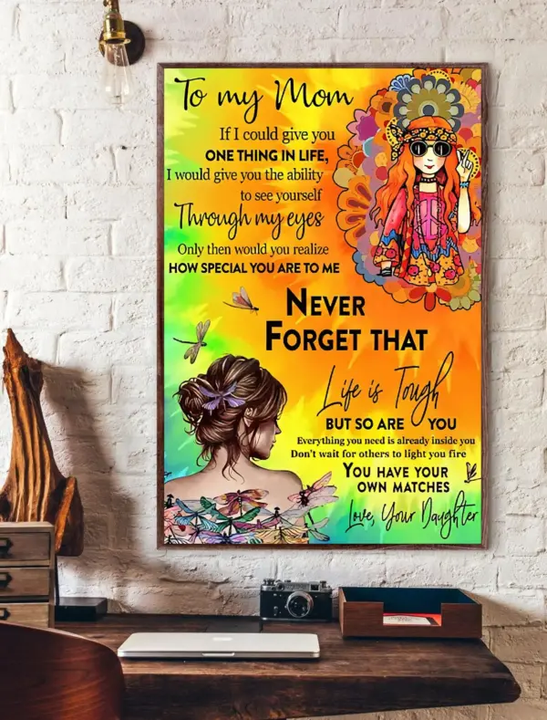 Hippie Daughter To Mom Life Is Tough Poster To My Mom From Daughter Poster Mom Gift From Daughter Hippie Poster Gift For Mom