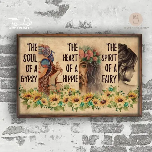 Hippie Girl And Sunflower Poster The Soul Of A Gypsy The Heart Of A Hippie The Spirit Of A Fairy Poster Home Living Decor Poster