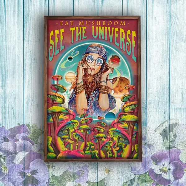 Hippie Girl Mushroom Hunting Eat Mushroom See The Universe Poster Smoking Smoke Cannabis Weed Living Decor Poster