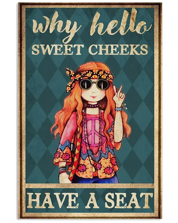 Hippie Girl Why Hello Sweet Cheeks Have A Seat Poster