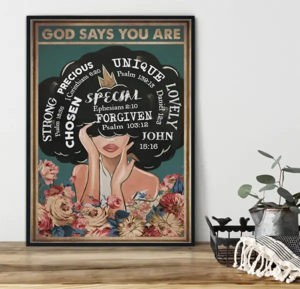 Hippie Girls God Says You Are Unique Special Lovely Precious Poster Boho Poster Girls Room Decor Framed Cancas Print Unique Gift