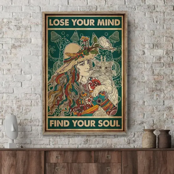 Hippie Lose Your Mind No Frame Poster Mother S Day Hippie Girl Lovey Cat Poster Hippie Day Cat Lover Gift Home Decor Gift Poster