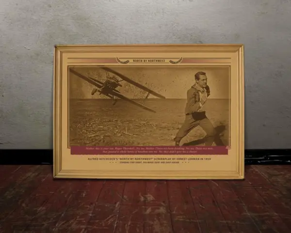 Hitchcock North By Northwest Monochrome Retro Classic Movie Poster