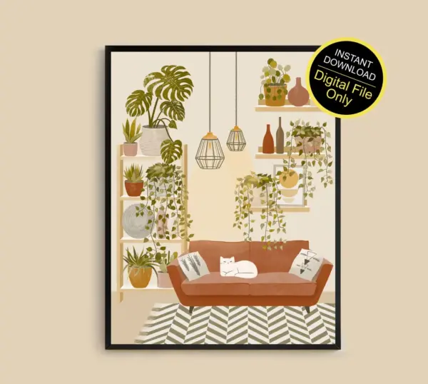 Home Garden With White Cat Wall Art Printable White Cat Boho Home And Cat Poster Cat And Plant Poster House Plants Print Cat Mom Gift