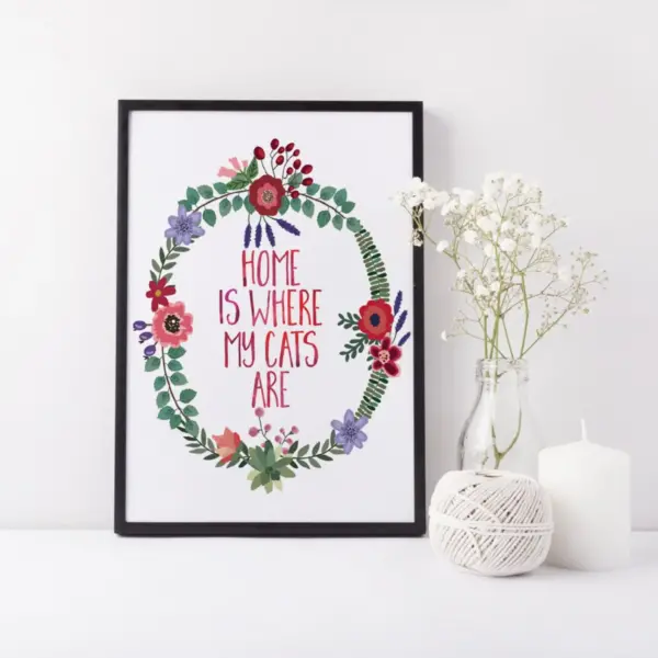 Home Is Where My Cats Are Printable Cat Wall Art Quote Cat Wall Art Cats Print Quote Family Quote Home Poster Home Decor Flower Wreath Print