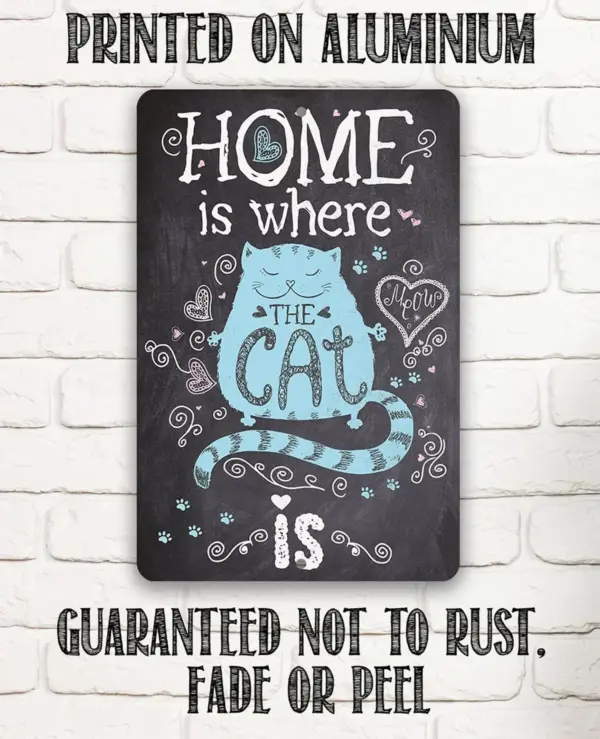 Home Is Where The Cat Is Or Aluminum Tin Awesome Metal Poster