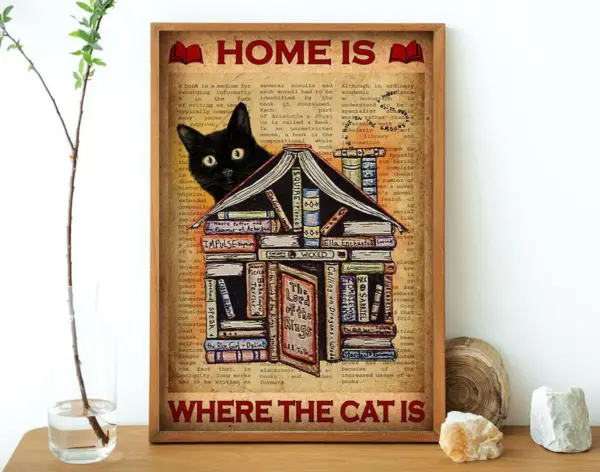 Home Is Where The Cat Is Poster Vintage Black Cat Poster Book Lovers Idea Gift For Cat Lovers Vertical Poster No Framed