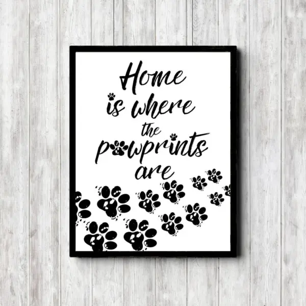Home Is Where The Pawprints Are Printable Pet Art Gift For Dog Cat Owner Lover Dog Cat Quote Wall Decor Monochrome Print