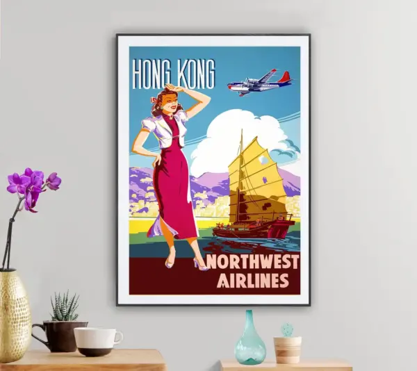 Hong Kong Northwest Airline Travel Poster Poster Print Sticker Or Canvas Print Gift Idea Wall Decor