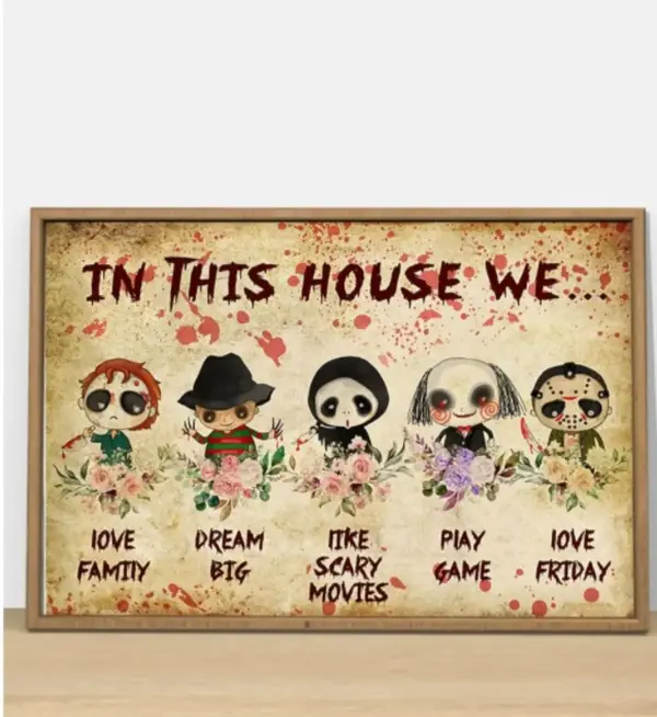 Unique horror movie-inspired wall art celebrating family bonds and big dreams, perfect for movie enthusiasts and home decor lovers seeking a personalized touch.
