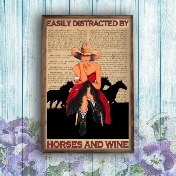Horse And Wine Lovers Cowgirl Easily Distracted By Horses And Wine Poster Wall Art Print Home Living Decor Poster