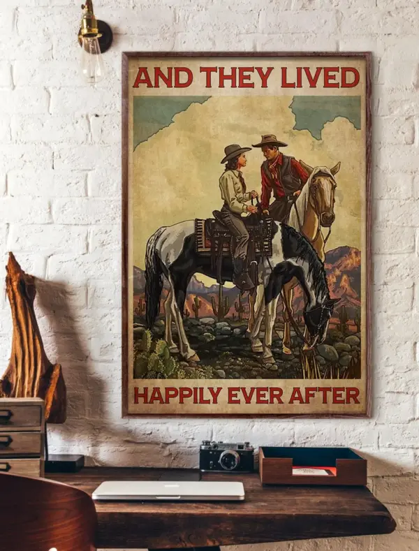 Horse Couple Happily Ever After Paper Poster Unframed Poster Love Horse Cowboy Best Gift Ever Signs For Home Wall Decoration 11