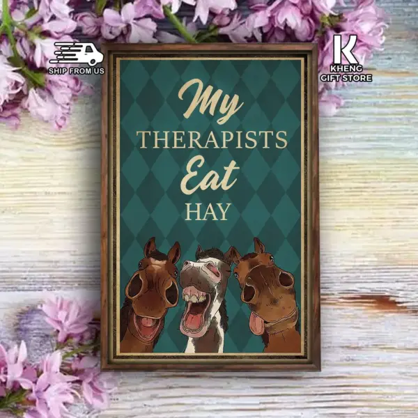 Horse Lovers My Therapists Eat Hay Funny Poster Bathroom Restroom Toilet Home Living Decor Poster