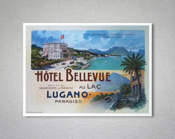 Hotel Bellevue Au Lac Lugano Suisse Vintage Travel Poster Poster Paper Sticker Or Canvas Print Gift Idea Christmas Gift