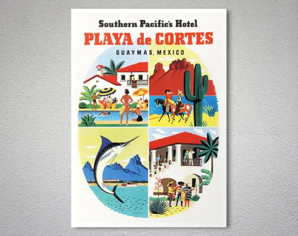 Hotel Playa Des Cortes Guaymas Mexico Travel Poster Poster Paper Sticker Or Canvas Print Gift Idea Christmas Gift