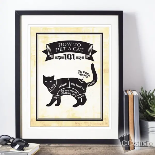 How To Pet A Cat 101 Cat Wall Art Cat Lover Cat Poster Funny Animal Art Animal Prints Cat Wedding Funny Wall Art