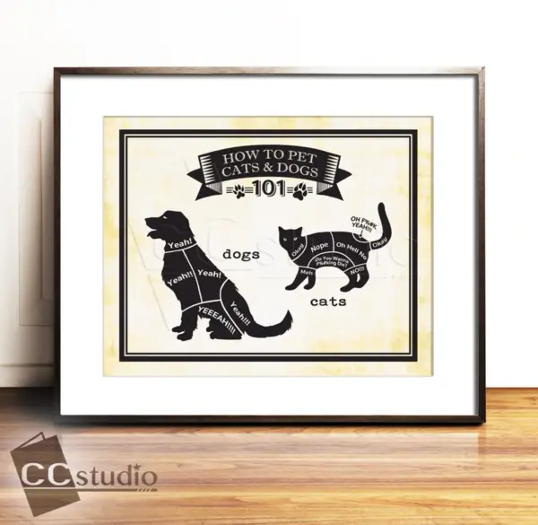 How To Pet Cats Dogs 101 Dog Wall Art Cat Wall Art Dog Lover Cat Lover Cat And Dog Poster Animal Prints Animal Art Home Decor Wall Signs