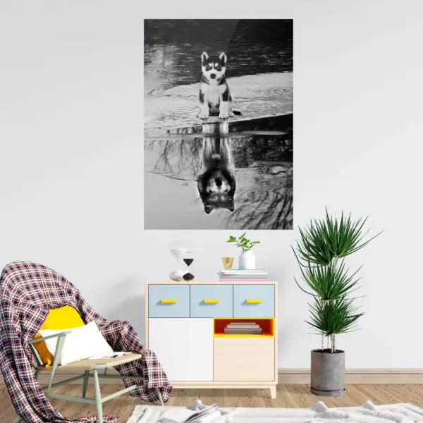 Husky Dog Water Reflection Poster Framed Matte Canvas