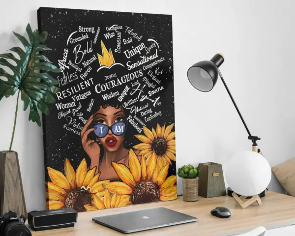 I Am Black Strong Girl Poster Sunflower African Women Pride Canvas Black Queen I Am Courageous Unique Fearless Wall Decor Poster Canvas