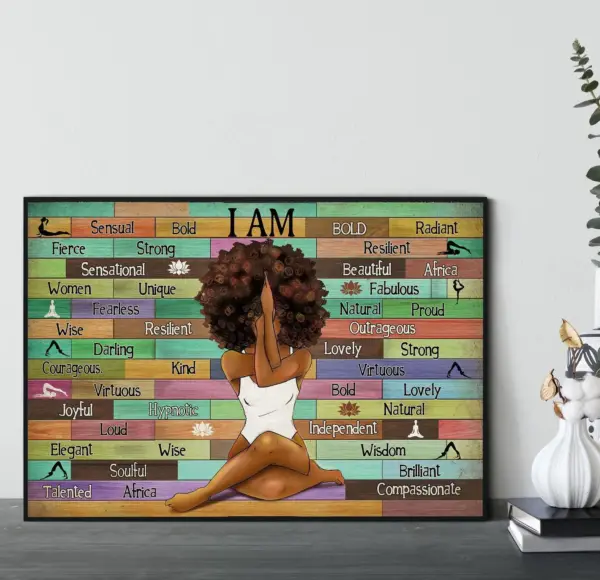 I Am Black Woman Canvas Art Afro Girl Yoga Poster African Girl Wall Art African American Canvas Black Girl Magic Black Melanin Wall Decor