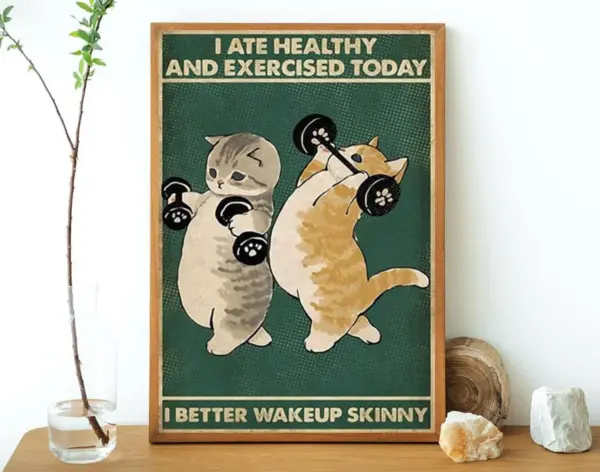 I Ate Healthy And Exercised Today I Better Wakeup Skinny Poster Gift For Cat Lovers Funny Cat Poster Wall Art No Framed