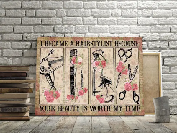 I Became A Hairstylist Because Your Beauty Is Worth My Time Poster Salon Decor Hair Stylist Quote New Salon Gift Beauty Salon Hair Salon