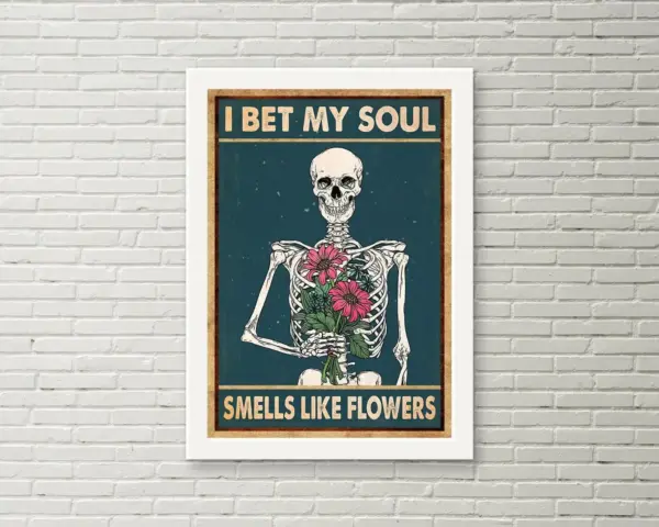 I Bet My Soul Smells Like Flowers Poster Flower Poster Garden Poster Skull Poster Skeleton Poster Skull Art Print Sugar Skull Decor