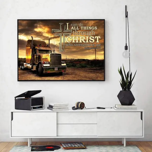I Can Do All Things Through Christ Who Strengthens Me Trucker Lover Jesus Lover Motivational Vertical Poster No Framed