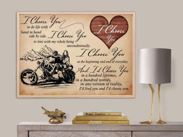 I Choose You Poster Love Motorcycle Canvas Best Gifts Ever Home Decor Motorcycle Racing Rider Biker Couple Wall Art Unframed Decor