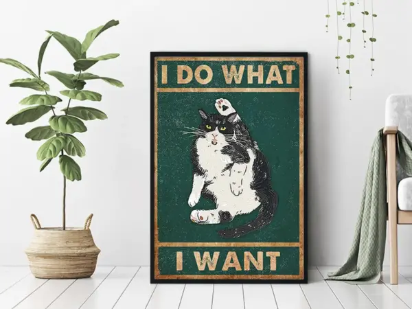 I Do What I Want Cat Licking Poster Funny Black And White Cat Art Print Cat Owner Gifts Cool Cat Poster Vintage Wall Art No Frame