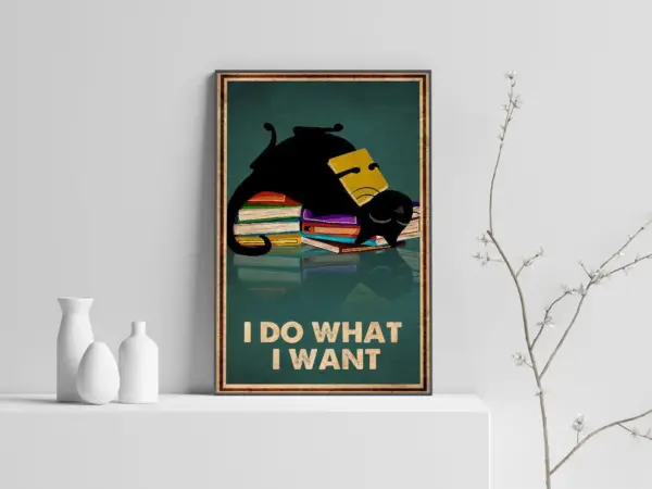 I Do What I Want Poster Black Cat Poster Canvas Art Funny Kitty Print Reading Book Art Printable Wall Art Signs For Home