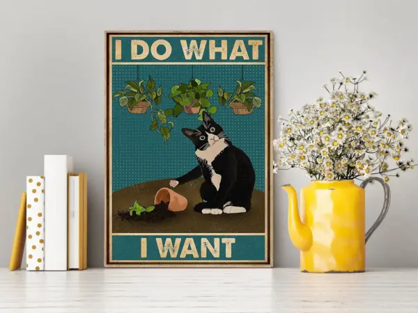 I Do What I Want Tuxedo Cat Gardening Vertical Poster Cat Vertical Art Print Black Cat Art Wall Sewing Lovers Poster