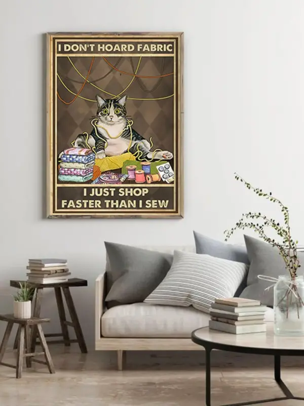 I Don T Hoard Fabric I Just Shop Faster Than I Sew Poster Cute Cat Poster Funny Cat Wall Decor Sewing Lover Gift Sewing Machine Print