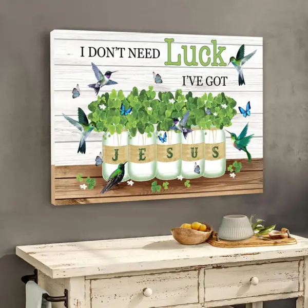 I Don T Need Luck I Ve Got Jesus Poster Christian Farmhouse Wall Decor St Patrick Day Wall Decor Shamrock Wall Hanging Mason Jar Print