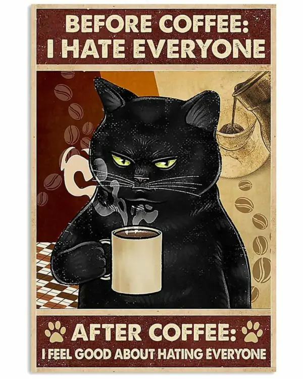 I Hate Everyone Cat With Coffee Poster No Frame Canvas With Frame